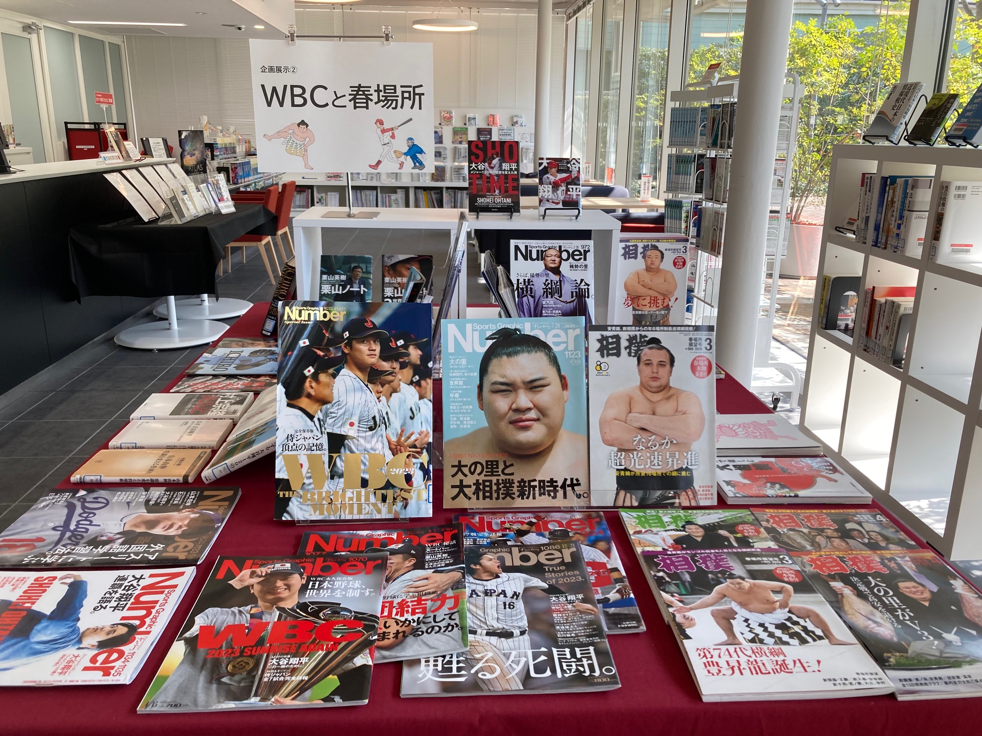 企画展示②「WBCと春場所:バックナンバーを中心に」 WBC開幕!大相撲春場所開催!図書館ではスポーツ雑誌のバックナンバーを中心に関連書籍を展示します。どうぞご利用ください。 企画展示②「WBCと春場所:バックナンバーを中心に」資料一覧 (PDF ファイル 0.58MB)